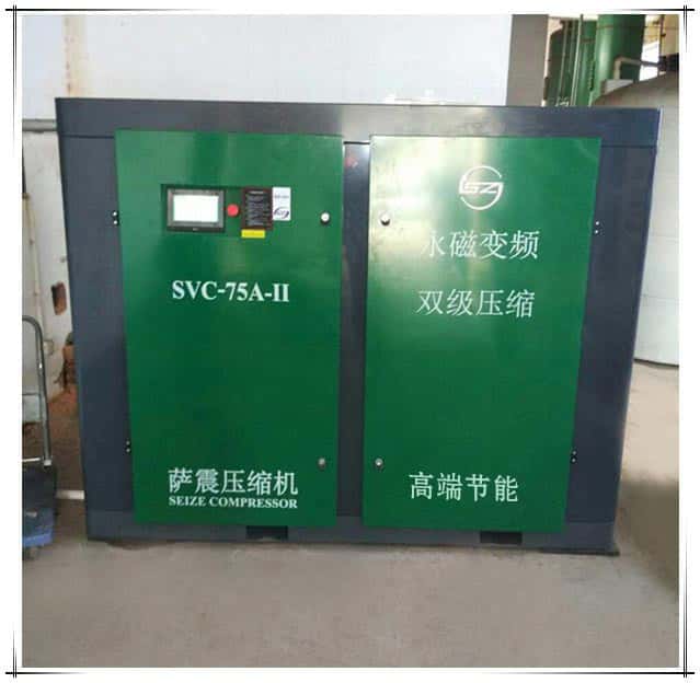 下面我們來一起看看薩震75kw永磁變頻雙級壓縮螺桿空壓機的現(xiàn)場圖吧!