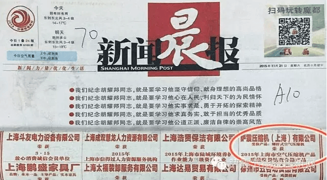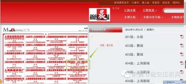 《新聞晨報(bào)》官網(wǎng),也能查詢到11月21日,薩震節(jié)能空壓機(jī)榮獲2015年上海市空氣壓縮機(jī)產(chǎn)品質(zhì)量監(jiān)督抽查合格產(chǎn)品。