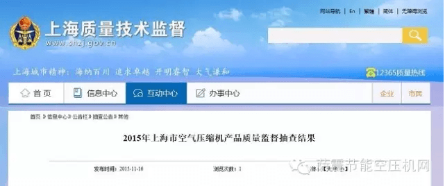 11月16日,上海市質(zhì)量技術(shù)監(jiān)督局在其官網(wǎng)公布2015年上海市空氣壓縮機(jī)產(chǎn)品質(zhì)量監(jiān)督抽查結(jié)果,抽查了47批次產(chǎn)品,經(jīng)檢驗(yàn),不合格1批次。