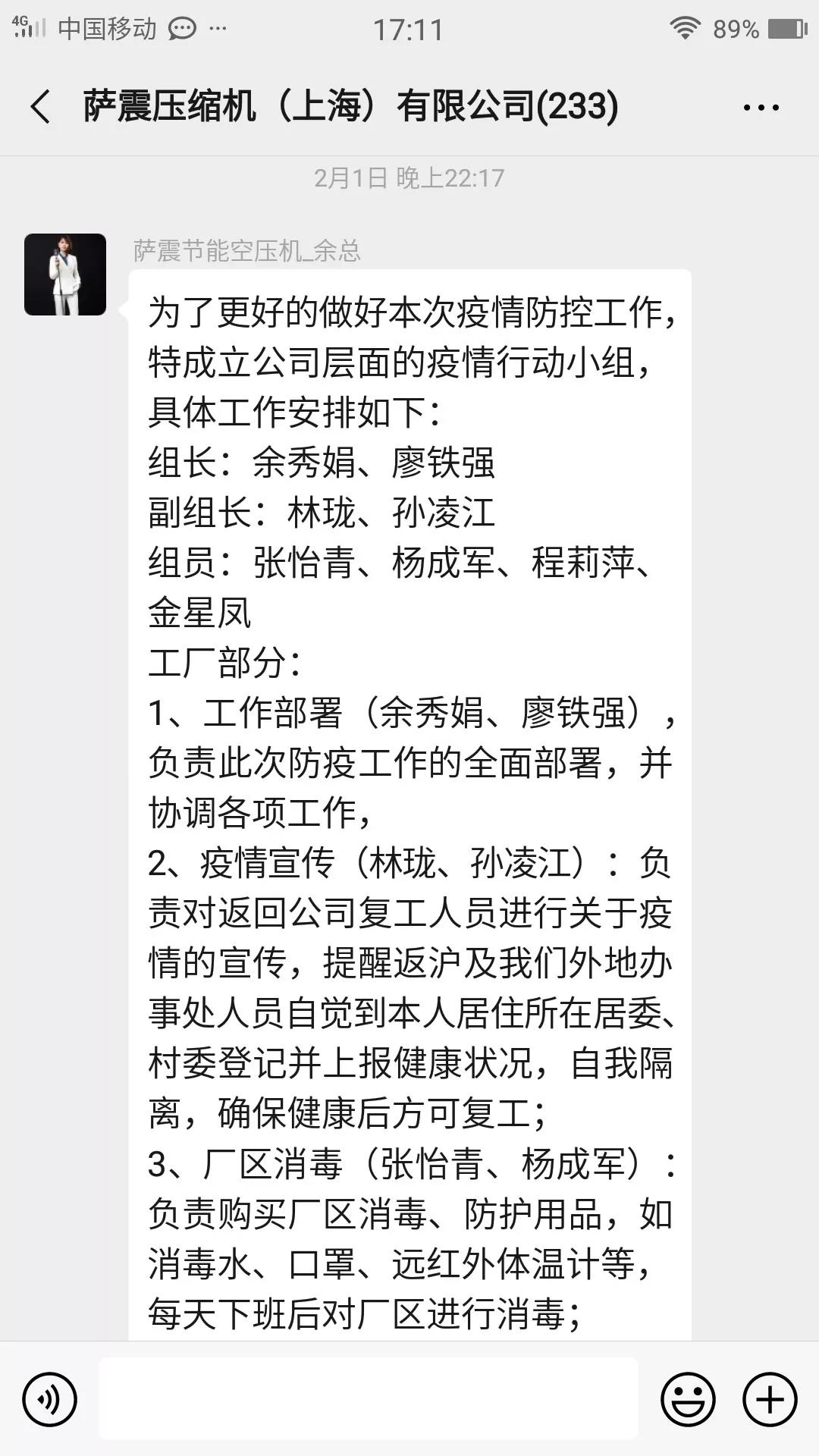 疫情當(dāng)前, 薩震壓縮機(jī)(上海)有限公司在行動: