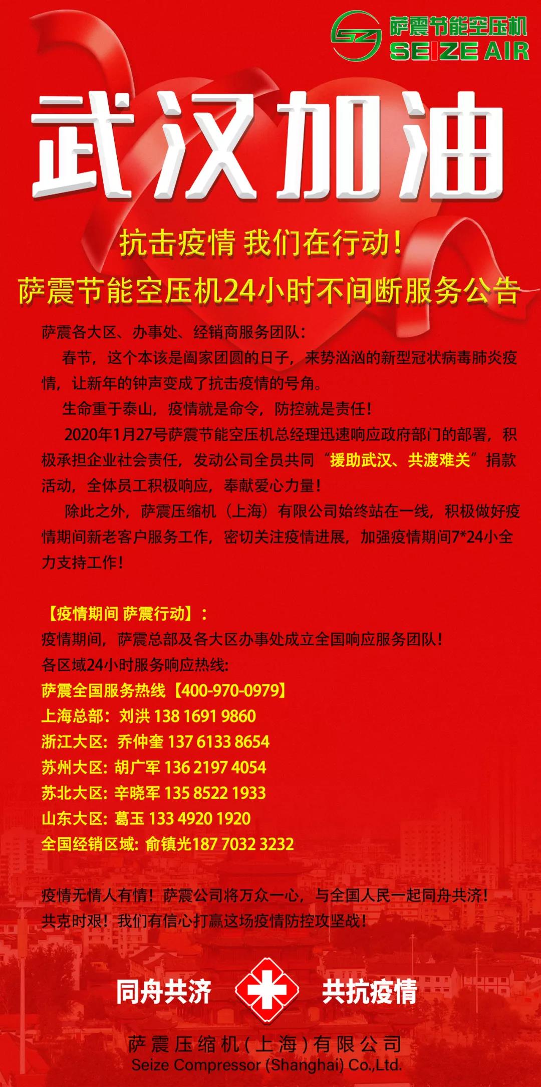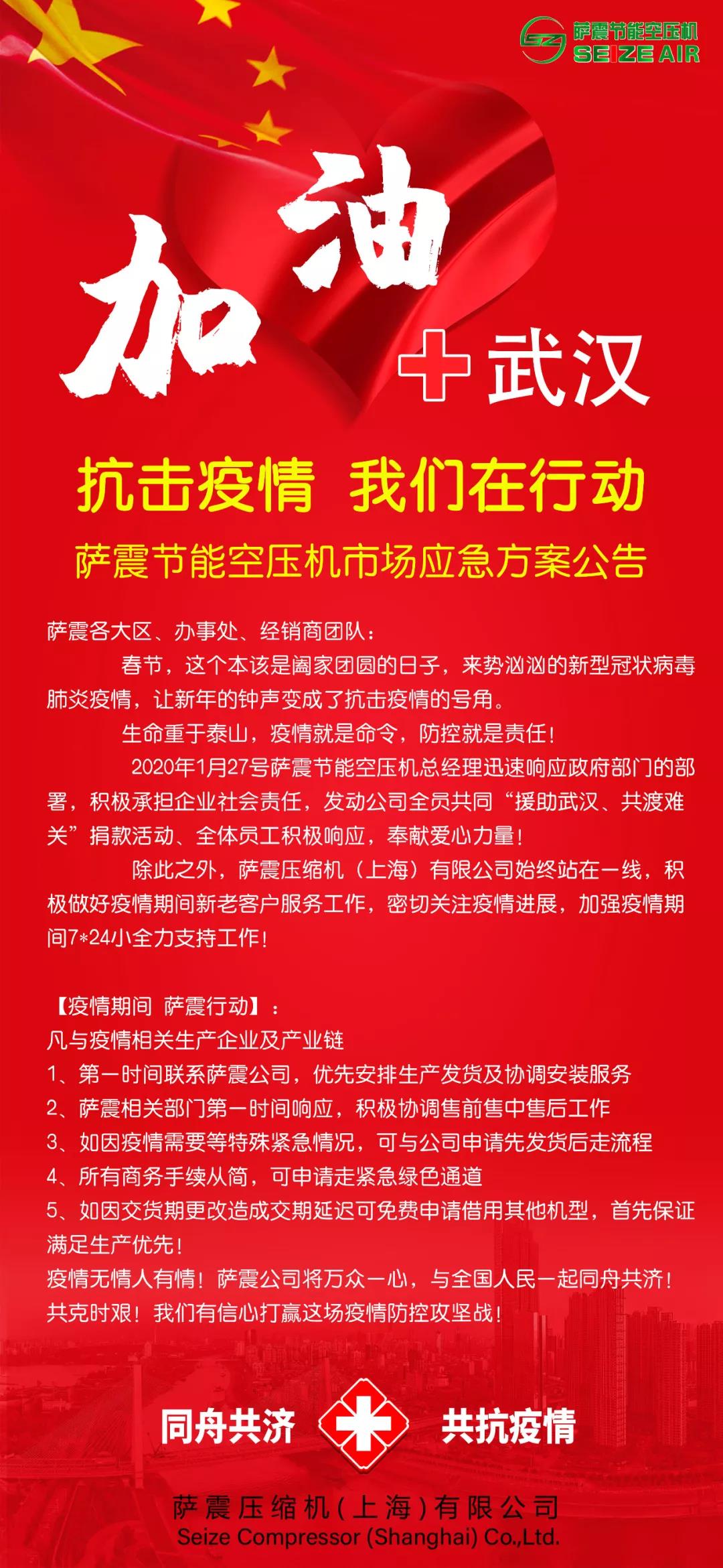 薩震節(jié)能空壓機(jī)為武漢加油-抗擊疫情,我們在行動!