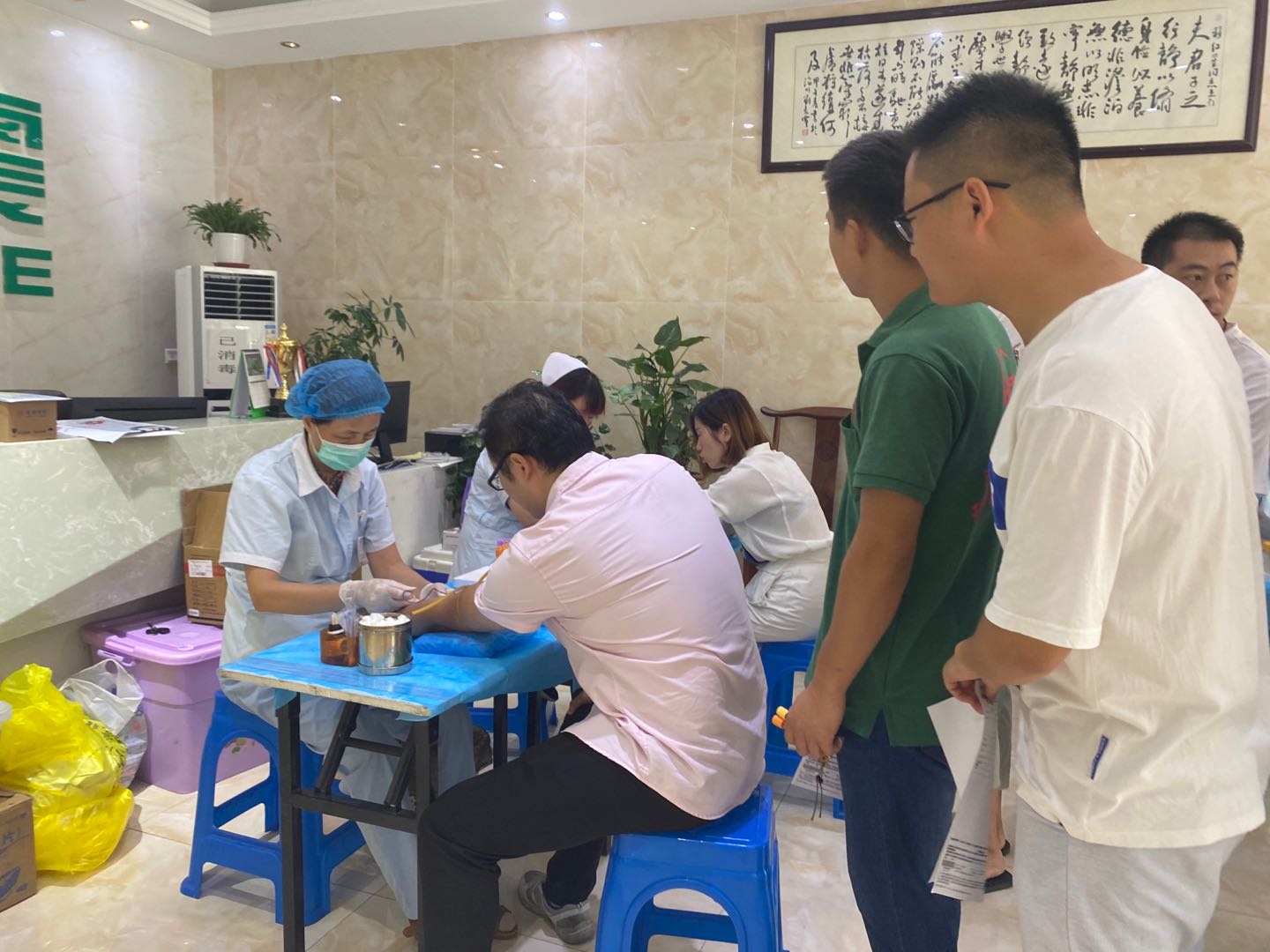 早上七點半,大家就已經(jīng)排好長長的隊伍等待體檢;本次體檢項目設(shè)有內(nèi)外科常規(guī)檢查、血常規(guī)、彩超、胸透、血壓、尿常規(guī)、心電圖、B超等多項體檢項目。