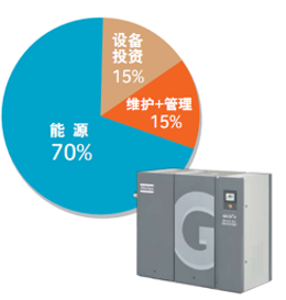 2.生命周期成本最低化 - 一臺(tái)空壓機(jī)從設(shè)備采購(gòu)、安裝、維護(hù)管理、到完全報(bào)廢停止使用期間用戶的所有支出成本稱之為生命周期成本。實(shí)踐證明,大多數(shù)客戶支出的成本組成中,設(shè)備初期投資占15%,使用期間的維護(hù)、管理成本占15%, 70%的成本來(lái)源于能源消耗。顯而易見(jiàn),客戶對(duì)于空壓機(jī)生命周期成本最低化訴求的關(guān)鍵點(diǎn)在于有效的能效管控。