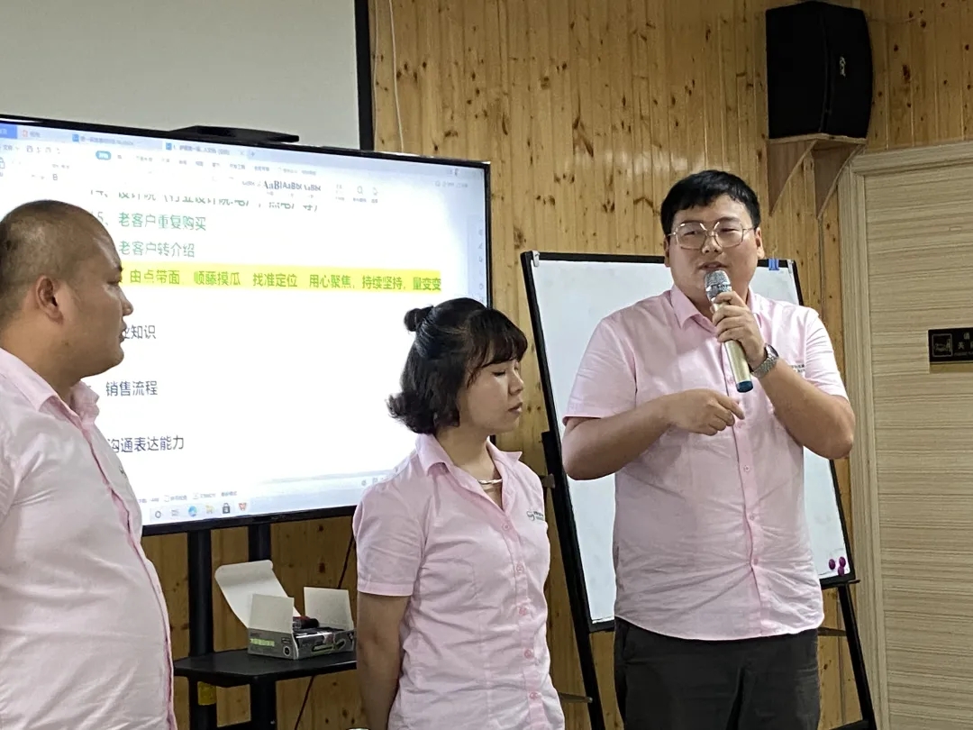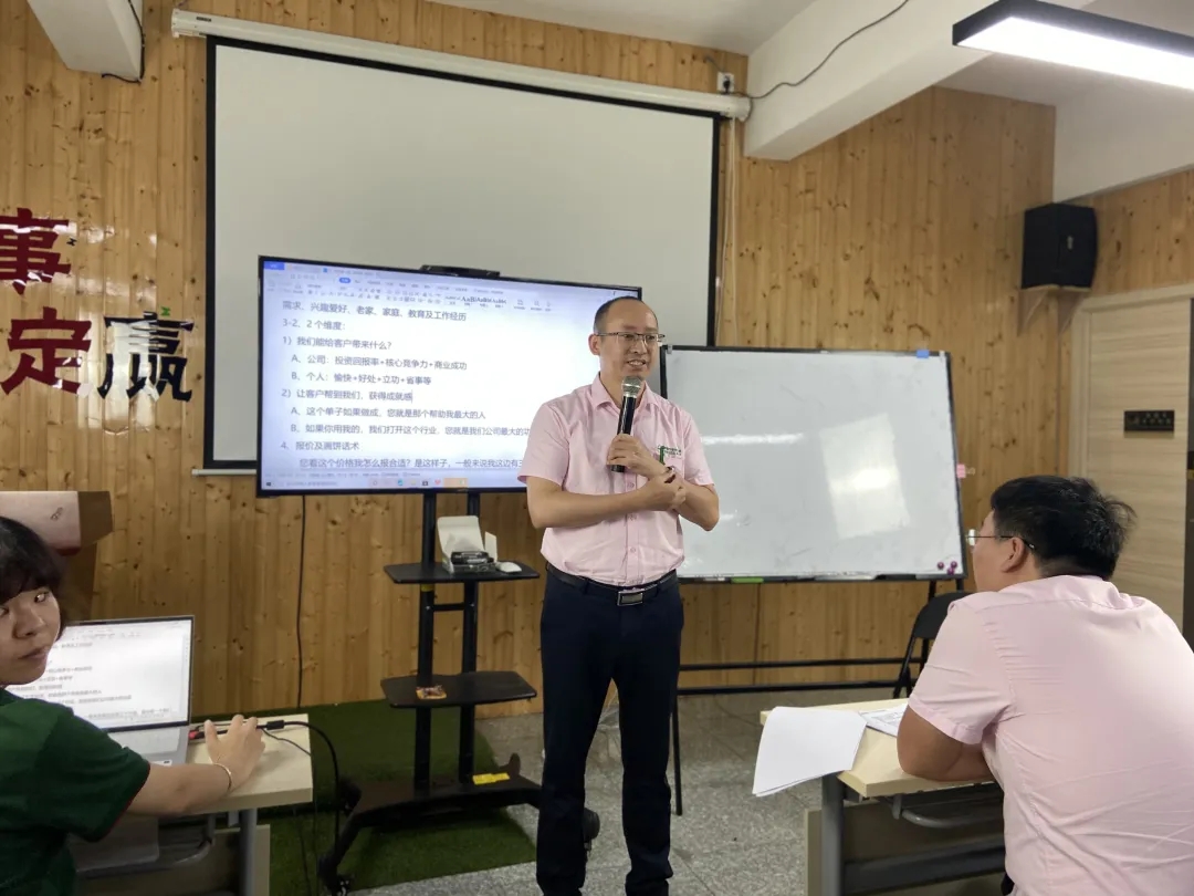 接下來,我們將跟隨總經(jīng)理程總來進(jìn)入正式的培訓(xùn)課堂,程總利用三天的時(shí)間,為我們的學(xué)員生動(dòng)形象的講解了企業(yè)文化;公司戰(zhàn)略;銷售板塊以及銷售通關(guān)考試等內(nèi)容,學(xué)員們也都積極有活力的參與其中,敢想敢說的發(fā)言表達(dá)自己的看法,并且認(rèn)真的記好了筆記。