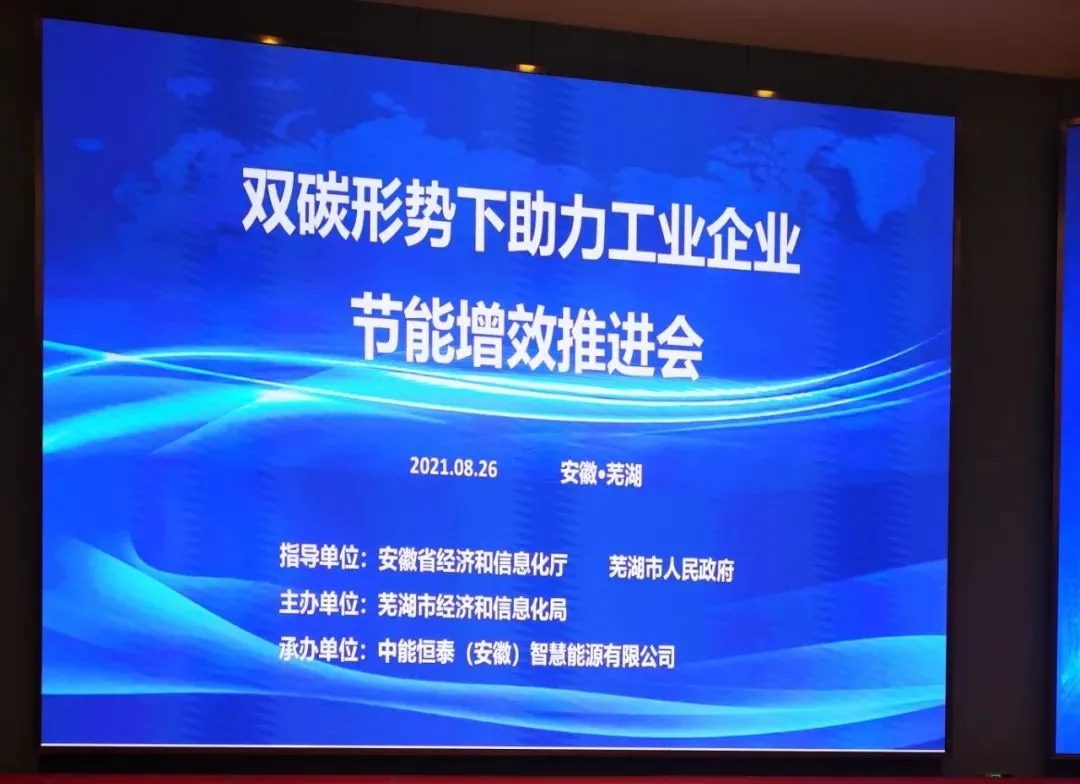 2021年8月26日14:00--18:00,程總受邀參加由安徽省經(jīng)濟(jì)和信息化廳、蕪湖市人民政府為指導(dǎo)單位,蕪湖市經(jīng)濟(jì)和信息化局為主辦單位,中能恒泰(安徽)智慧能源有限公司為承辦方在蘇寧環(huán)球大酒店舉辦的“雙碳形勢(shì)下助力工業(yè)企業(yè)節(jié)能增效”推進(jìn)會(huì),進(jìn)行交流。