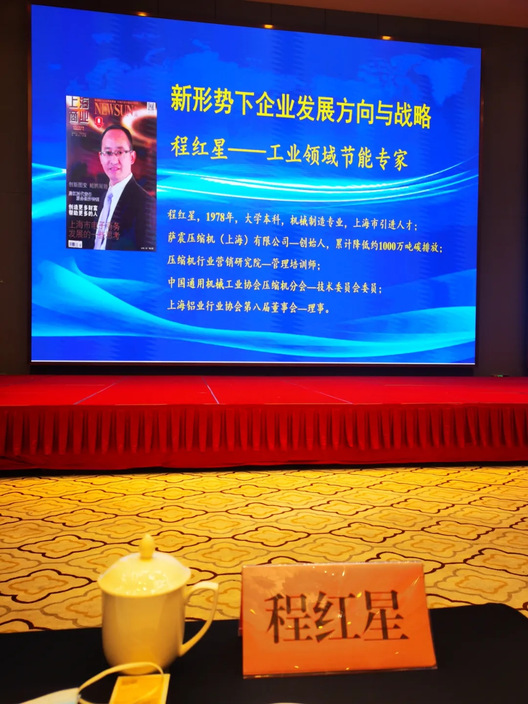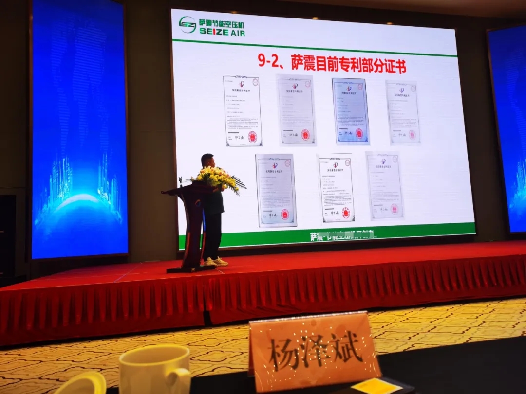 還有薩震壓縮機(jī)(上海)有限公司華中大區(qū)的副總監(jiān)楊澤斌,在臺(tái)上講解了“空壓機(jī)技術(shù)與產(chǎn)品的應(yīng)用案例”,以實(shí)際的應(yīng)用情況來(lái)向大家展示了薩震產(chǎn)品的高效節(jié)能、環(huán)保。