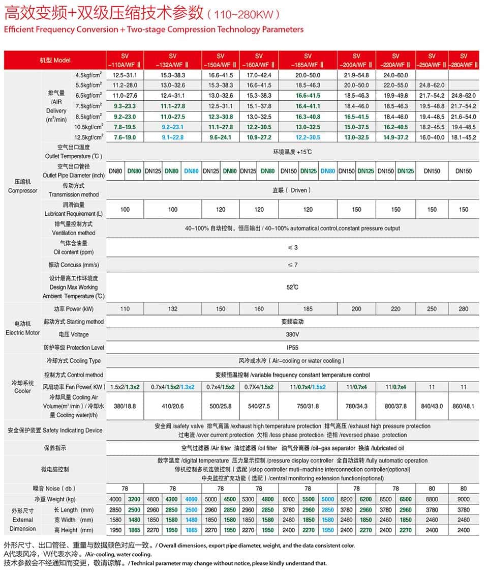 高效變頻雙級(jí)壓縮技術(shù)參數(shù)(22~90kw)