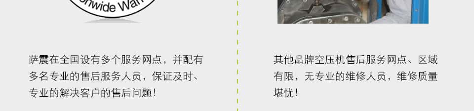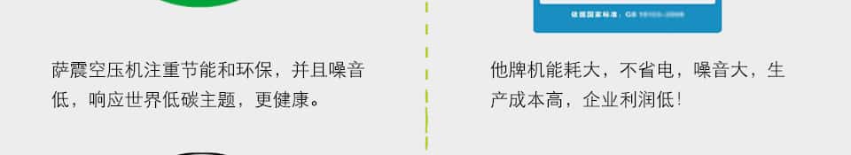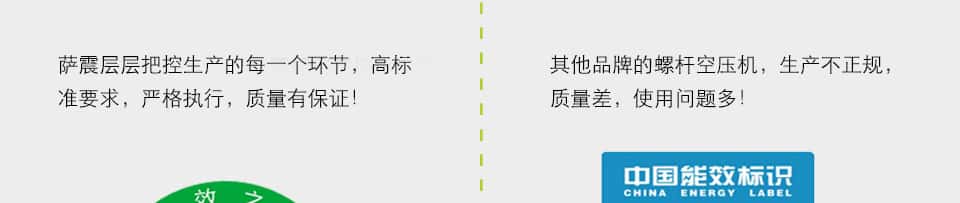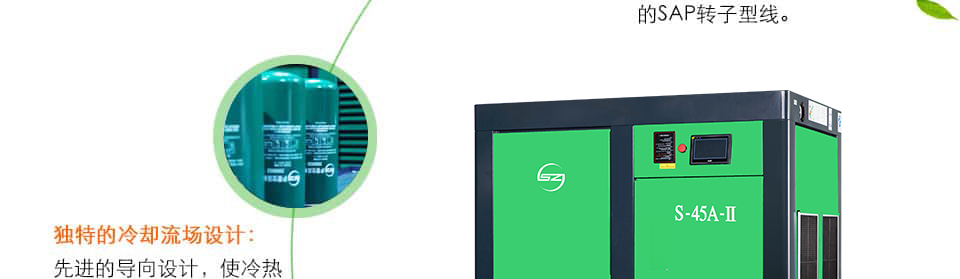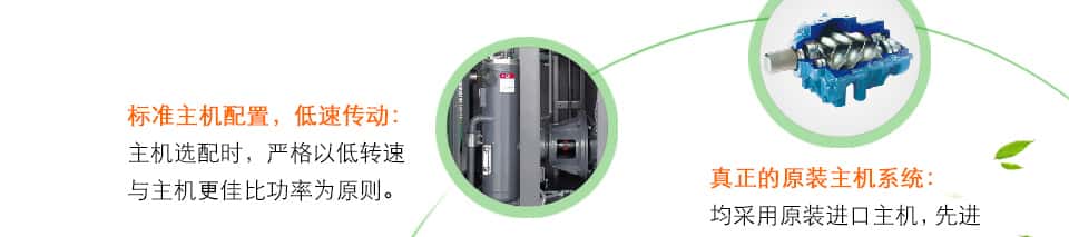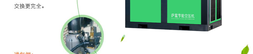 采用薩震空壓機主機,無振動,低噪音,大轉子,低轉速,強大的心臟決定了整機的優(yōu)異性能。轉子經(jīng)嚴格的動, 靜平衡試驗, 使其運轉平衡更好, 振動更小, 噪聲更低,同時在直徑不變的情況下,轉子長度增加,有效壓縮面積增加,從而達到流量增加,功耗降低。