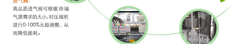 進氣閥: 采用獨特的碟式進氣閥,氣動功能集約化,僅一個運動部件,可靠性高,無需日常維護,并能隨著實際使用氣量的多少,對壓縮的氣量進行0~~100%無級調 解,自動的加載和卸載, 從而降低了能耗,進氣閥內設有單向閥,以防止突然停機時,油和空氣回流。壓力損失小,工作壽命長,是目前更可靠,效率更高的進氣調節(jié)方式。